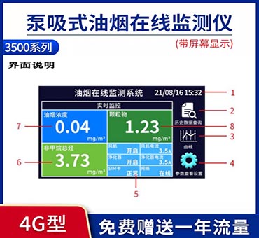 泵吸式油煙在線監(jiān)測儀SN-3500-LB能夠?qū)Σ蛷N排煙管道的油煙濃度、顆粒物濃度、非甲烷總烴(NMHC)濃度進(jìn)行24小時不間斷測量,并上傳我司免費(fèi)的監(jiān)控平臺或政府監(jiān)控平臺。