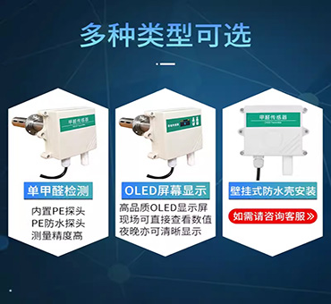 采用專業(yè)的甲醛濃度傳感器進行測量,具有測量范圍寬、精度高、線性度好、通用性好、使用方便、便于安裝、傳輸距離遠、價格適中等特點。