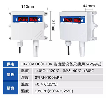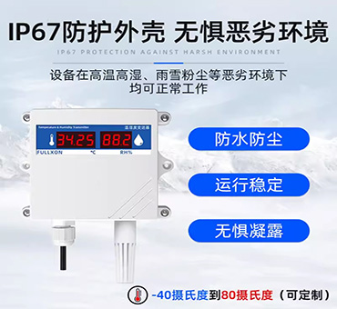 該傳感器帶有數(shù)碼管顯示功能,可實(shí)時(shí)顯示當(dāng)前溫濕度,采用壁掛防水殼,多用于室外及現(xiàn)場(chǎng)環(huán)境惡劣的場(chǎng)合。