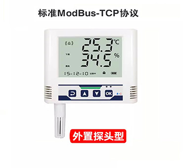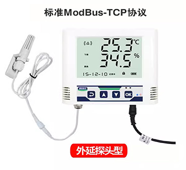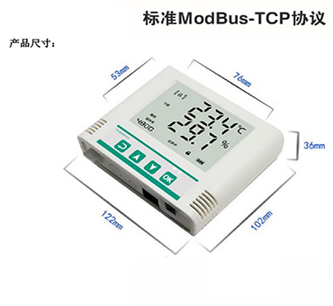 它將采集的溫濕度數(shù)據(jù)通過ModBus-TCP方式,即已架設(shè)好的以太網(wǎng)通訊網(wǎng)絡(luò),遠(yuǎn)距離傳輸?shù)椒?wù)器,實現(xiàn)溫濕度數(shù)據(jù)的集中監(jiān)控。